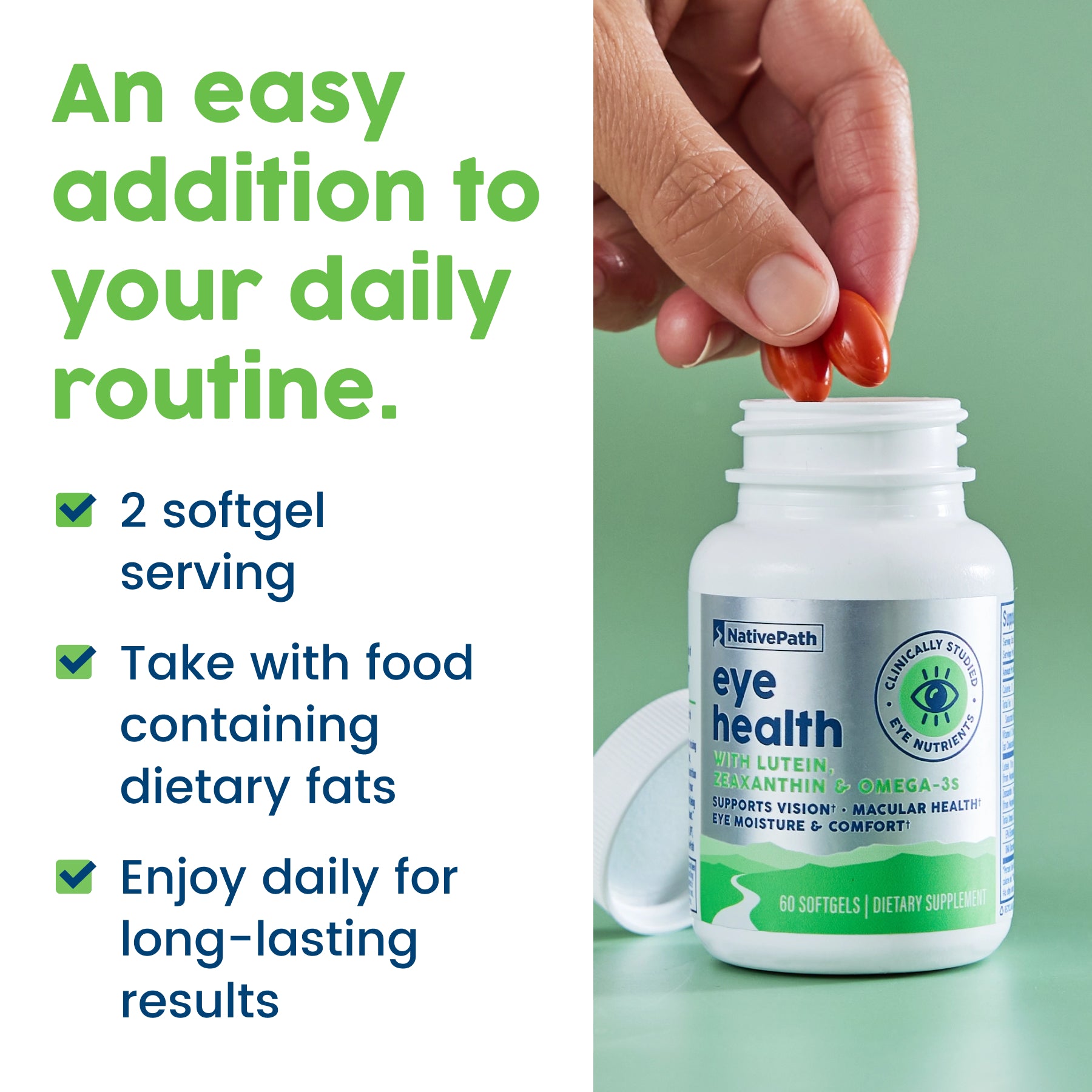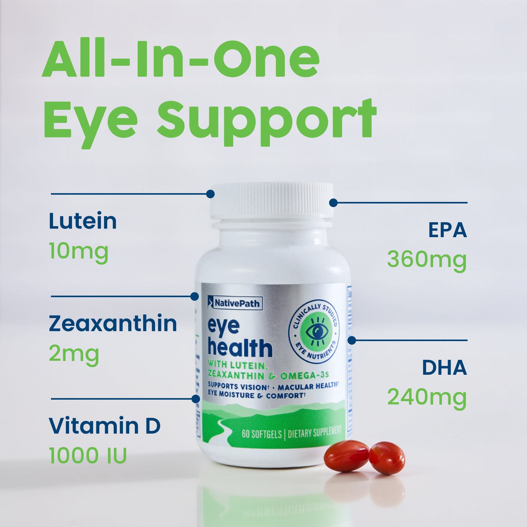 4-IN-1 EYE HEALTH FORMULA: NativePath Eye Health combines lutein, zeaxanthin, omega-3s (EPA & DHA), and vitamin D in one convenient softgel. This thoughtfully crafted blend provides unique nutritional support for your eyes in our modern, screen-focused world.