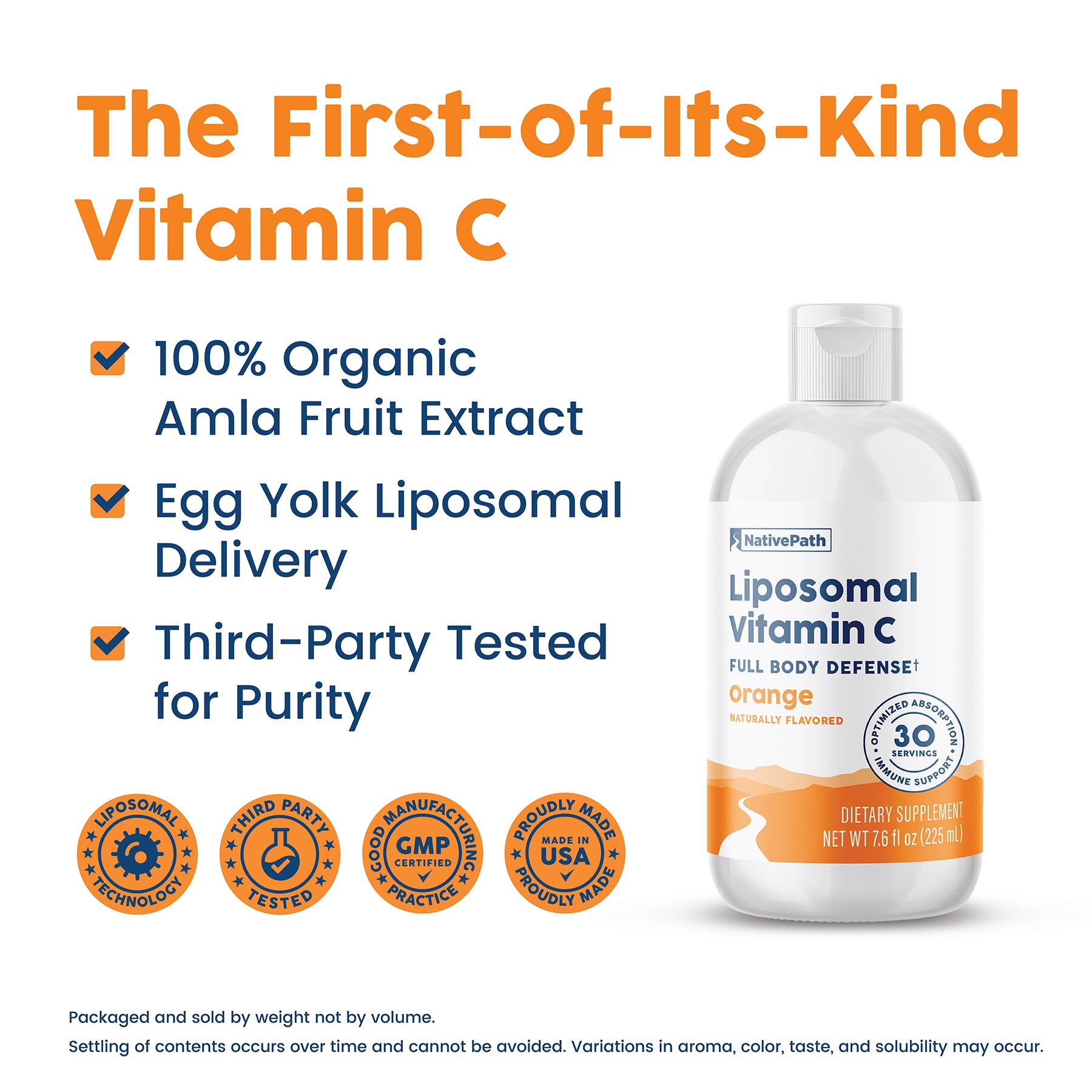 NativePath Liposomal Vitamin C delivers 500mg of pure vitamin C derived from Amla fruit—one of nature's richest sources of complete vitamin C.