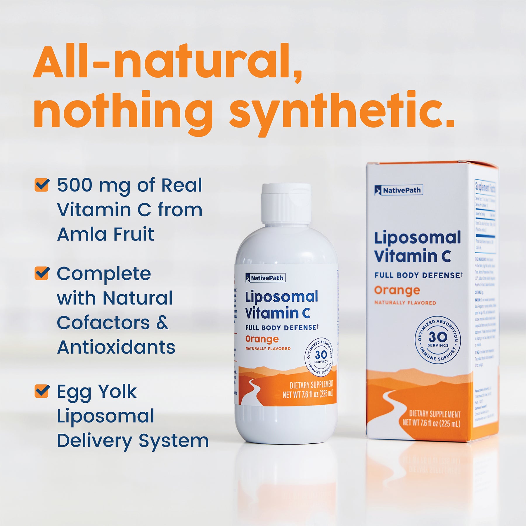 Our unique formula uses egg yolk for liposomal delivery, avoiding common allergens like soy and seed oils. This advanced delivery system enhances absorption by up to 19X compared to traditional supplements. Support your immune system, collagen production, and cellular health with NativePath Liposomal Vitamin C.†