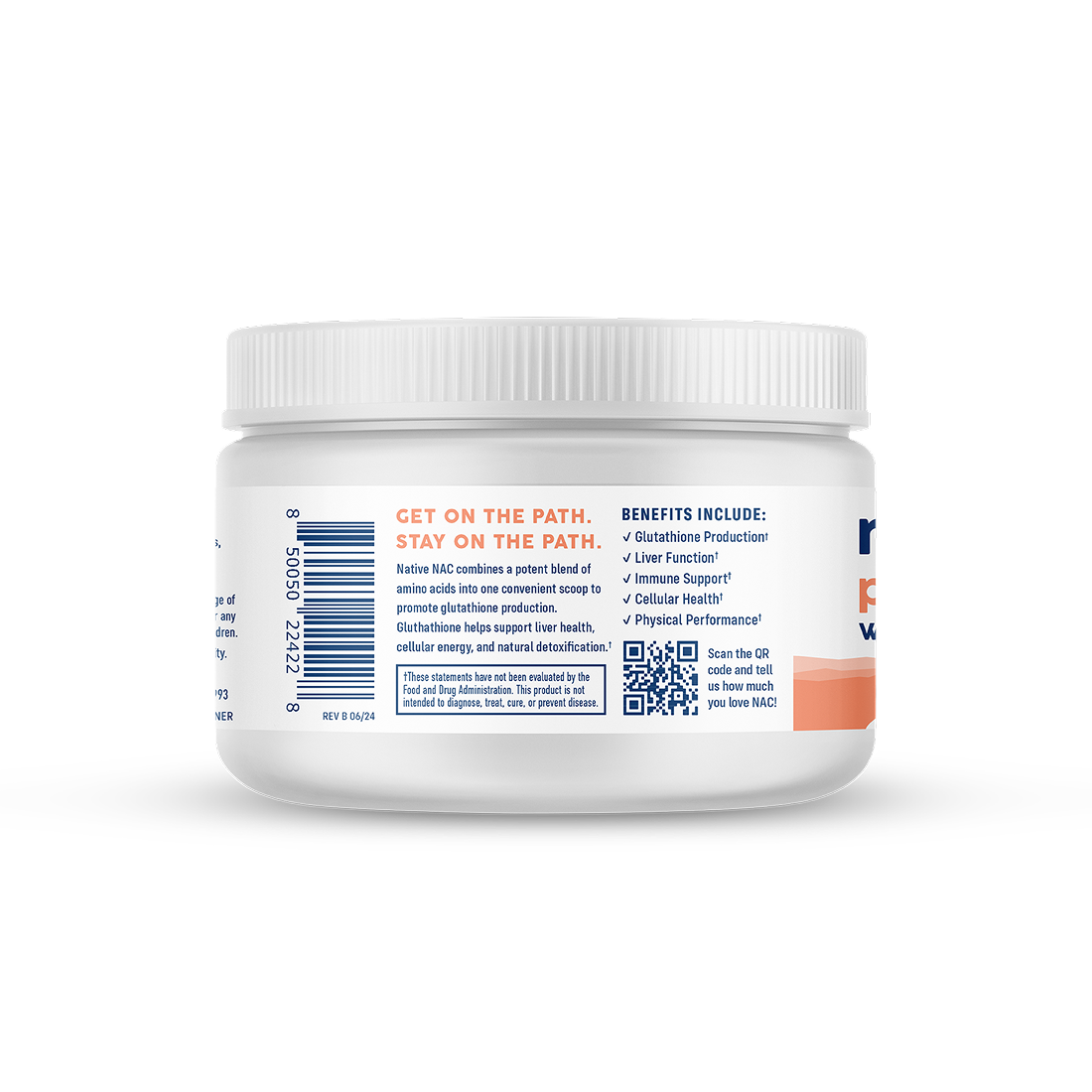 Native NAC is a zero-sugar drink mix that combines a potent blend of NAC, glycine, and taurine into one convenient scoop to promote glutathione production. This antioxidant—found in every cell within your body—helps eliminate toxins in the liver, support cellular energy, and promote healthy aging.†