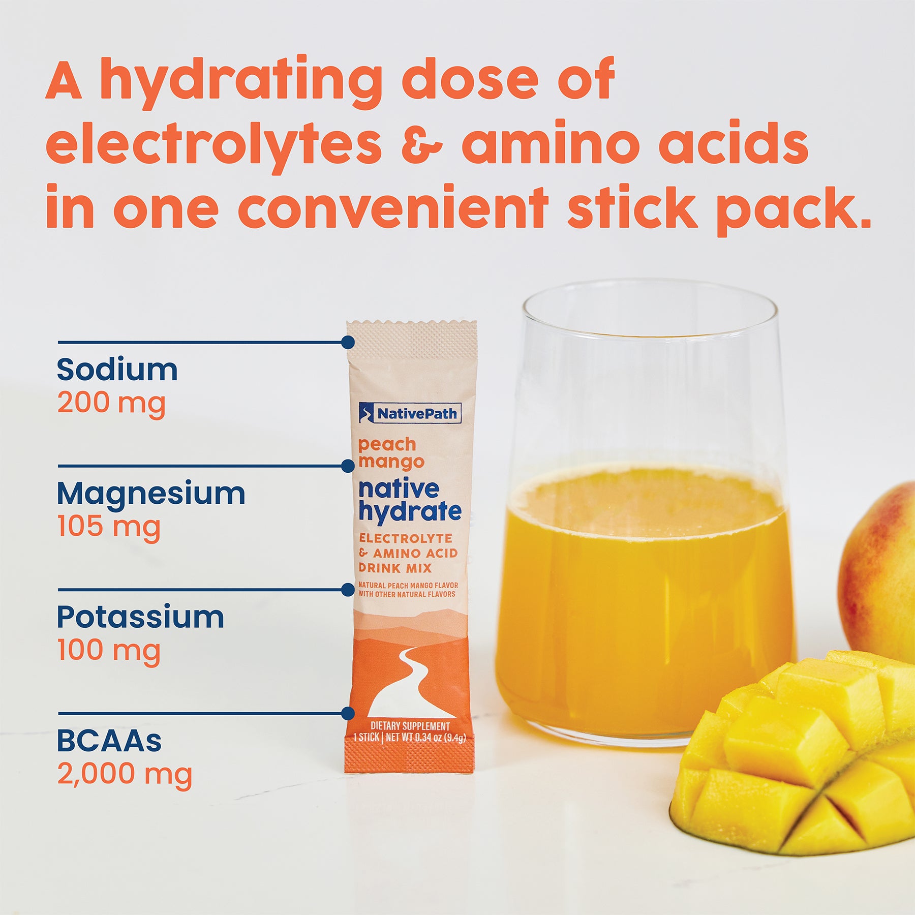 - Zero Sugar: To compliment Native Hydrate’s peachy mango flavor, we added a touch of pure stevia extract. This sweetener is 100% natural, zero-calorie, and zero-glycemic.