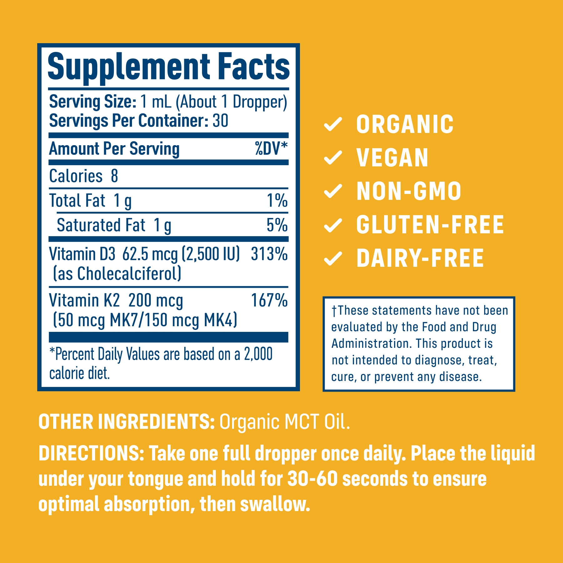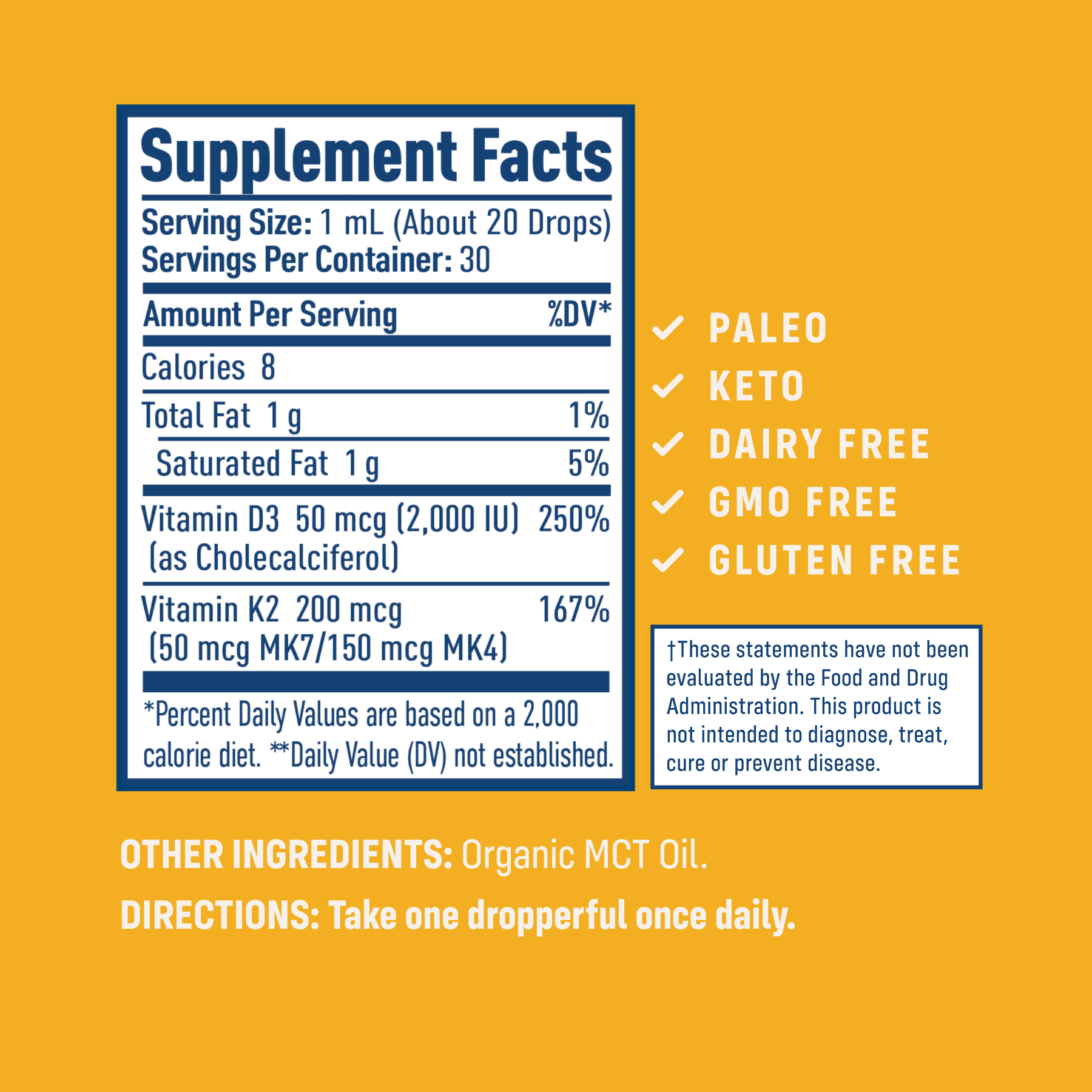 This three-in-one formula packs a healthy punch. Experience our Vitamin D supplement, paired with vitamin K2 and organic MCT oil.